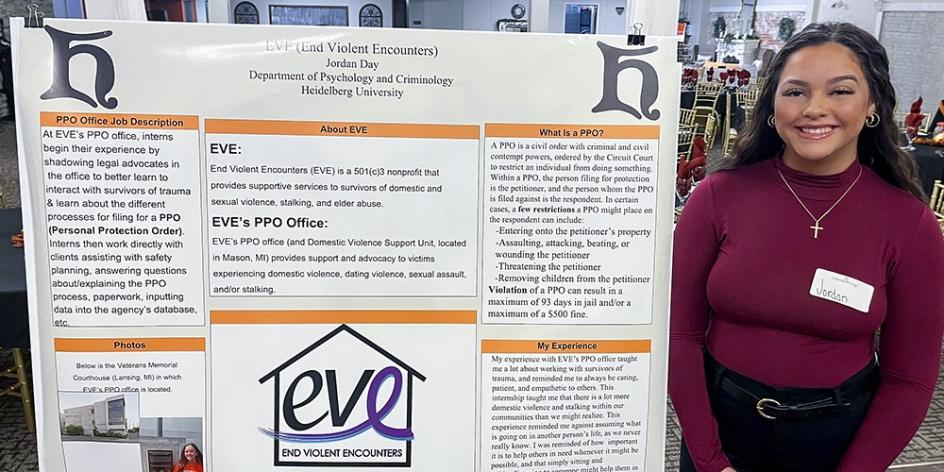 During their junior year, students majoring in one of the behavioral sciences are required to complete an independent research project or an internship. On Sunday, 18 juniors and seniors – all of whom are majoring or double majoring in Criminology and Psychology – presented the results of their work at the 9th Behavioral Sciences Showcase at The Chandelier in downtown Tiffin.