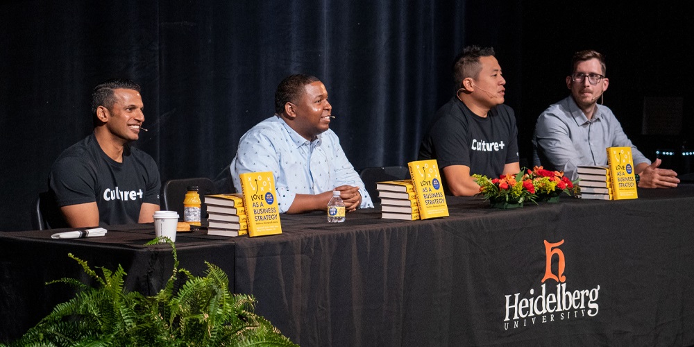 Dr. Trish Berg, associate professor of management who organized the series, connected with the co-authors while using Love as a Business Strategy as a textbook in her classes. The co-authors Zoomed with Trish and her students during the spring semester and plans were laid for the four to come to campus to help kick off the series. They did not disappoint.