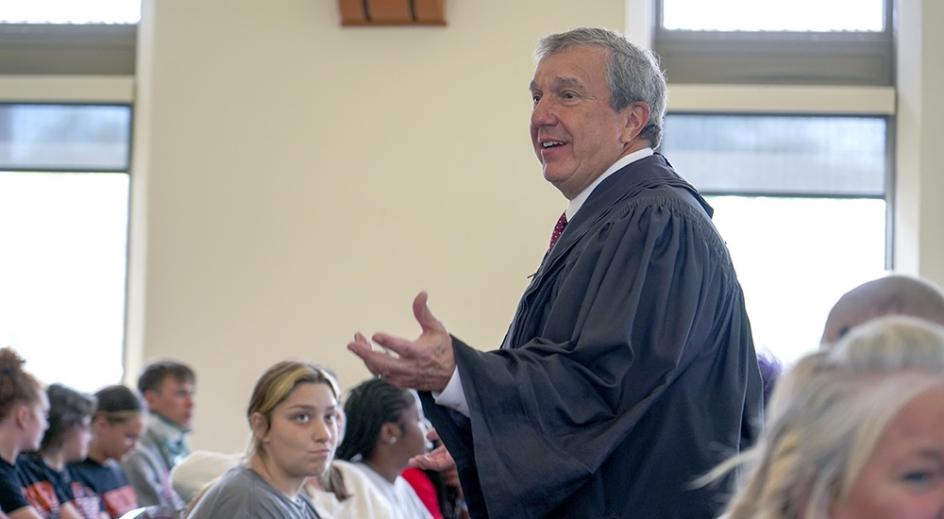 Between hearings, Judge Shuff – as he does every year – interacts with students to answer any questions they have about what they witnessed or the law in general. This year, he quizzed students about their knowledge of the Constitution, which he termed “an amazing document.”