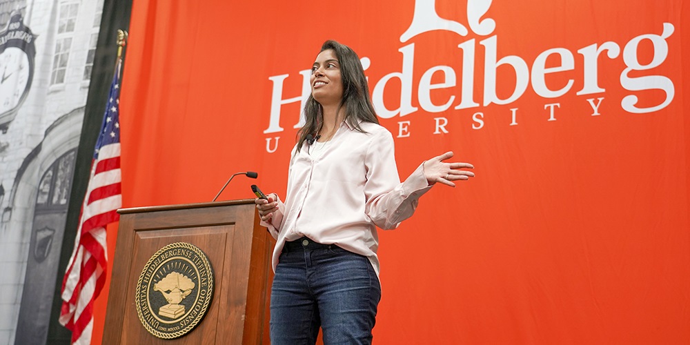 Crystal Kadakia served as this year’s 2nd HYPE Speaker. She has “been an adult for 16 years now,” and in those past 16 years, she has developed her passion for problem-solving and building bridges to become an expert in organizational change. Her talk for Heidelberg students this morning got them imagining and thinking about how they should approach their careers to ultimately become who they want to be.