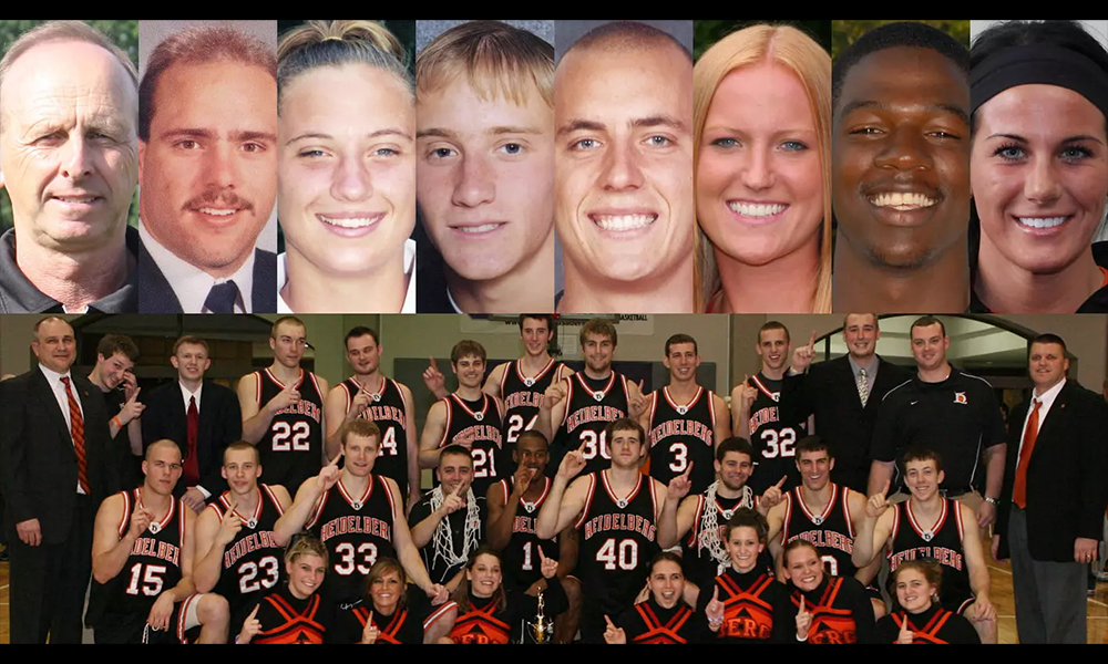 With a potent mix of perimeter shooting and paint presence, Duane Sheldon's 2007-08 Men's Basketball team claimed Heidelberg's first, and only, OAC Men's Basketball Tournament title. The team is still one of just four in school history to compete in the NCAA Tournament. Andrew Lemmon, Chad Szalay, and Brian Schmidt received All-OAC honors, while Lemmon, Jake Hessey, and Josh Calver earned Academic All-OAC nods.