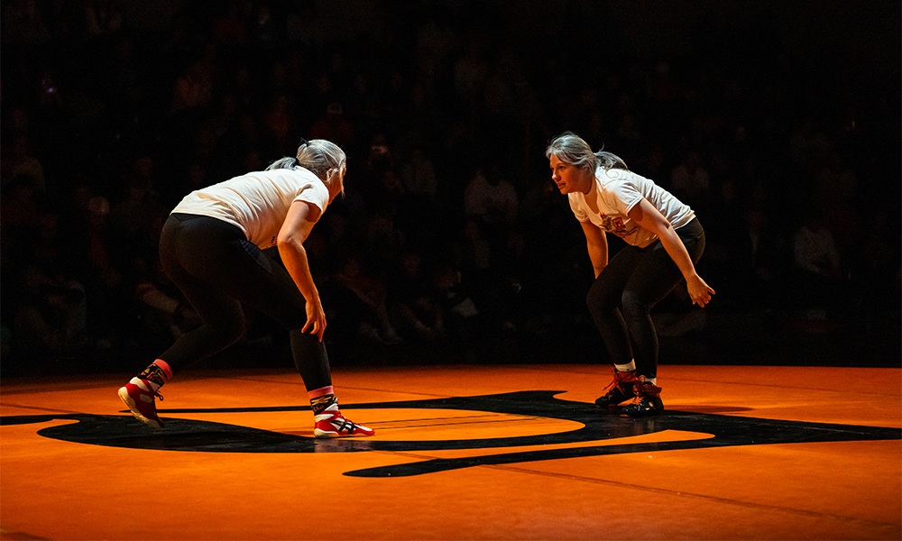 Ashley agreed: “Last night’s match was more than just great competition. It was a chance to show our support for our Women’s Wrestling team,” she said. “I’m deeply grateful to our donors, alumni, students, and community members who came out to cheer, contribute, and invest in the growth of this exciting new program. I’m especially honored to have been joined in this idea by my friend and colleague, Courtney DeMayo Pugno.”